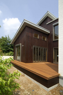 建築予定地は、古くからの造園の町で緑も多く町全体が植栽を利用した庭園です。 町並みを壊さず環境に合い、それであって現代風でおしゃれな家。 そこには、外壁に木(杉材)塗り壁材を利用した自然素材を生かした自然にとけ込む家です。
