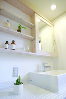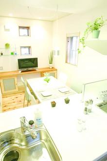 1階に狭小地にキッチン・水廻りをすべて集めると、かなり窮屈なプランになります。そこでバス・洗面コーナーを2階に配置。一階には26帖のパブリックゾーンへと変身をとげました。 土地面積が35坪・建物面積30坪でも間取りを工夫するだけで、広々・明るい・風通しのよい住まいになりました。