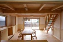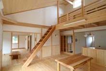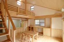 リビングは、屋根勾配をそのまま利用したダイナミックな斜め天井で、気持ちの良い空間が広がります。その奥にはお子様が帰省されたときに使える大きめのロフトを造りました。