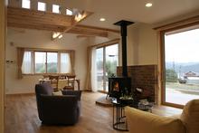 林に囲まれた路を進むと見えてくる高台。この絶好のロケーションを活かした家が完成しました。森の中の雰囲気に溶け込む外観や見ているだけでも楽しい薪ストーブ。機能性とデザインを両立させた趣のある一軒です。