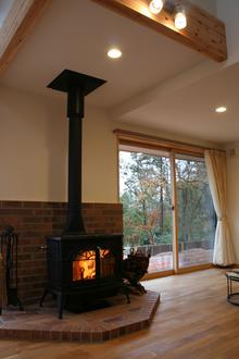 | 主な仕様 | 屋根材:ガルバリウム鋼板/外壁材:防火サイディング下地ヌリート仕上げ(一部レンガタイル使用)/床材:ナラ無垢板/建具:パイン無垢/吹抜け/一部天井板貼仕上げ/薪ストーブ | ||
