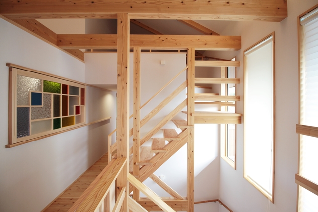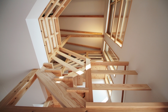 職人さんの技術が光る木製のらせん階段はこの家のシンボルです。