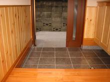 これまでの玄関が間口が狭かったことと窓が無かったことにより、暗い雰囲気だったが、若干間口を広げ、内装材を改修+高窓の設置+玄関ドアの取替により、ゆとりある玄関となりました。