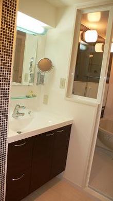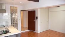 築19年の中古マンションをお手ごろ価格で購入し、思い通りにリフォーム。従来の分譲マンションの決められた間取り、ありふれたキッチンなどに不満を感じていらっしゃいましたので、ほとんどスケルトンに近い状態に解体して、リフォームしました。床はピンク系の無垢フローリング、壁のホワイト、建具のブラウンの3色でコーディネートし、スタイリッシュにまとめました。