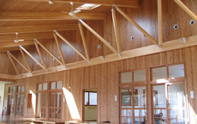 強度・・・在来工法に比べ、約2~2.5倍のせん断強度 従来の木造住宅は、継ぎ手部分の断面欠損により、構造部材の強度を著しく損なうという欠点をもっていました。「ハラテック21」は、接合部の欠損部分を少なくし、強靭な構造体を造り、地震や台風による揺れや振動、荷重など外力に対して抜群の強度を発揮します。在来工法と比べると、約2~2.5倍のせん断強度をほこり、安定した良質な集成材との相乗効果で堅牢な構造躯体を実現しました。認定試験におしてもその強度は実証済みです。住宅の安全性が高まる中、欠かせない信頼感を生み出します。