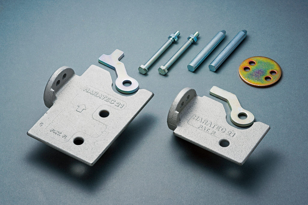 高質・・・ダクタイル球状鋳鉄を使用し、強度と耐食性能を飛躍的に向上 従来の金具は鉄製が多いため、湿気に弱く、環境によっては腐食する恐れもあります。「ハラテック21」はダクタイル鋳鉄を使用しています。ダクタイル鋳鉄は鉄より硬度衝撃に強く錆びにくい特質を持っています。またジオメット処理してありますので、錆びによる内部までの腐食は起きません。「ハラテック21」は 精度・品質ともに高水準を保持しています。また、製品は全てロット番号で管理され、製造時期・製造工場を確認していただけるようになっています。