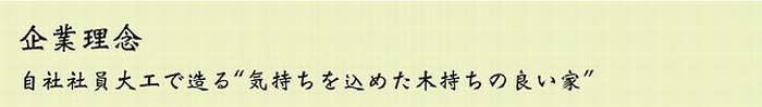 「企業は人なり」とは、よく言ったもので、企業理念は企業の考え方や信念と言えます。企業の信念を顕すことは企業の存在理由を表明することです。藤丸建設の企業理念からは、職人である社員たちが一丸となり、施主の家造りにかける想いに責任を持って応えるべく、全身全霊で家造りに臨んでいくという強い想いが伝わってきます。