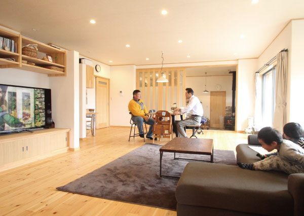 リフォームのきっかけは「とにかく冬暖かい家にしたかった」というO様邸は、薪ストーブを中心に家族の時間が育まれています。無垢のフローリングと漆喰の壁もさらに心地よさのプラスとなっているようです。