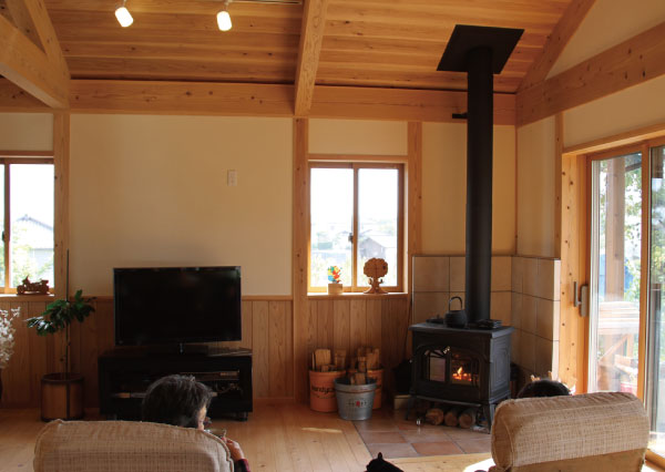 冬の代名詞“薪ストーブ”薪ストーブの前でゆったりと過ごす心地いい時間。家中に暖かい空気が広がります。