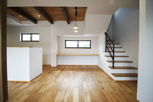 床、階段、天井にふんだんに木材を使用しており、自然素材のぬくもりを感じることができる家が完成しました。
