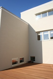 半地下室のあるスキップフロアのお住まいが完成しました。中庭を中心に、床の高さを半階づつずらして配置したスキップフロアの住まいは半地下室にトレーニングルーム、中二階には和やかな光を取り込んだ主寝室を計画しました。 階層をずらして連続した空間をつくる事により、広がり感を生み出し、視線の変化を楽しめるお住まいです。