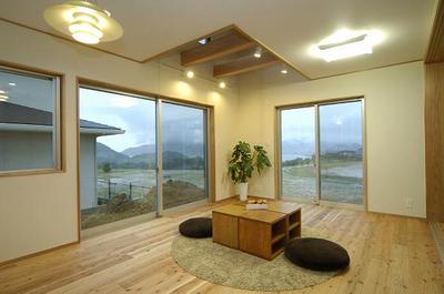 ひとつひとつの空間をゆとりをもって大きめに。子供たちもいづれ独立するので、部屋は最小限に。間仕切りをして子供部屋としても使えるし、みんなでくつろぐ場所にもなるフリースペース。蓄熱暖房機一つで家中暖か。