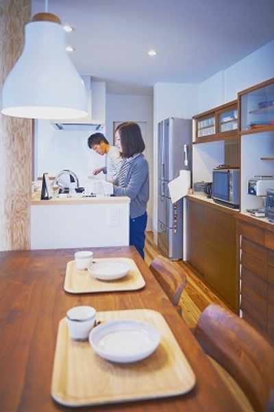 たまにはご主人が料理を振る舞う、、、仲睦まじいご夫妻の大好きな場所はダイニング。自然と会話が弾むそう。