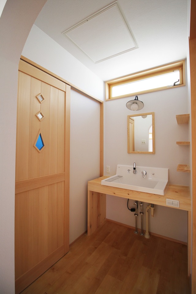 そして吹抜けの大きな窓から入る、優しい光と空の景色が、生活に新鮮さを運んでくれる家です。