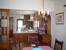 LDKは一続きの空間ですが、キッチン空間のリフォームだったため、工事をしないリビングダイニングで違和感が出ないように仕上げ材選びに気を使いました。キッチンの床については、既存のフローリングに似たものを貼ると、日焼けなどによる微妙な色の差で貼替えたことが目立つのであえて明るめの大理石調のフロアを使用しました、このことでキッチンの色がはっきりし、調和がとれた空間になりました。
