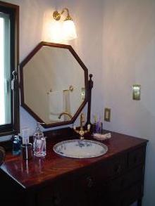 機能的なキッチンや洗面化粧台でしたが、プラスチックや化粧板の質感が趣味で集めていらっしゃるアンティーク家具や目指すインテリアのテイストに合いませんでした。家具調のキッチンと洗面台を設置することで、まとまりがある空間になりました。
