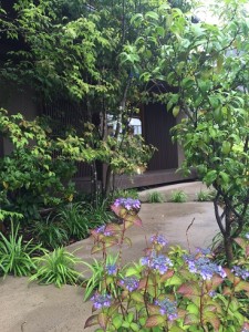 玄関入り口の山アジサイがかわいいですよ