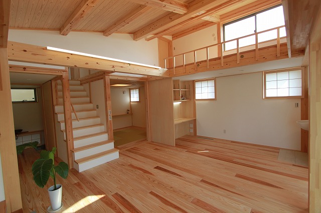 リビングにつながるオープンロフトは寝室・書斎・収納スペースetcとさまざまな用途に使われます。