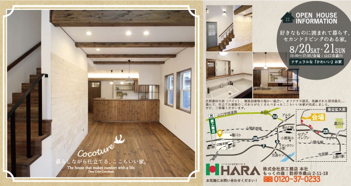 原工務店~8月末まで完成見学会! 8月 29th, 2016 お知らせ 予約制完成見学会のお知らせ 場所 : 山口市鋳銭司 (~8月末まで見学可能です) 『緑と光と風が調和する家』 詳しくは原工務店HP をご覧ください。 原工務店~完成見学会のお知らせ 8月 18th, 2016 未分類 8/20(土) 21 (日) 完成見学会のお知らせ 家族のこだわりがつまった、ナチュラルでかわいいお家です。 詳しくは 原工務店HP をご覧ください。