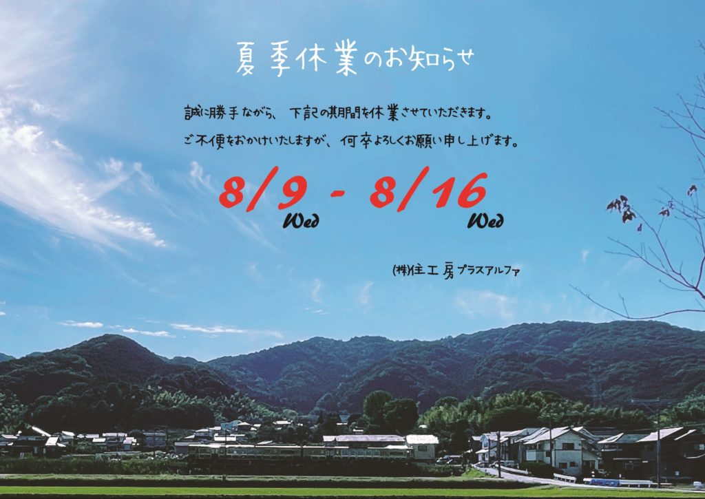 注文住宅の施工事例追加しました。 8月 31st, 2023 お知らせ, 新着施工例 季節とともに過ごすスローライフ 広すぎず狭すぎず、2人で暮らすのに丁度良い平屋の家。 窓際の造作ベンチは寛ぎの居場所となると共に、スペースを有効活用し、たっぷりの下部収納を設えました。 造作ベンチの上部に設けた腰窓は外の景色を絵画のように見立てて、切り取るように設置しており季節のうつろいを目で見て肌で感じながら生活を送れます。 ぜひ、ご覧ください♩ 夏季休暇のお知らせ 8月 3rd, 2023 お知らせ 誠に勝手ながら、以下の期間を休業とさせていただきます。 2023年8月9日(水)~ 2023年8月16日(水) 休業中にいただいた「お問い合わせ」につきましては、 8月17日(木)以降に対応させていただきます。 大変ご迷惑をおかけしますが、何卒ご了承くださいますよう お願い申し上げます。