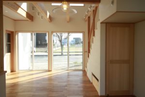 白い壁と木材を基調とした造りで木の温もりを感じられる住まいになりました。