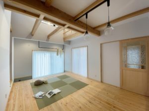 杉の床板と畳の相性がばっちりなリビング。和モダンな雰囲気を醸し出していますね。