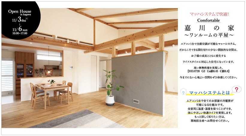 エアコン1台で全館空調が可能なマッハシステム。
