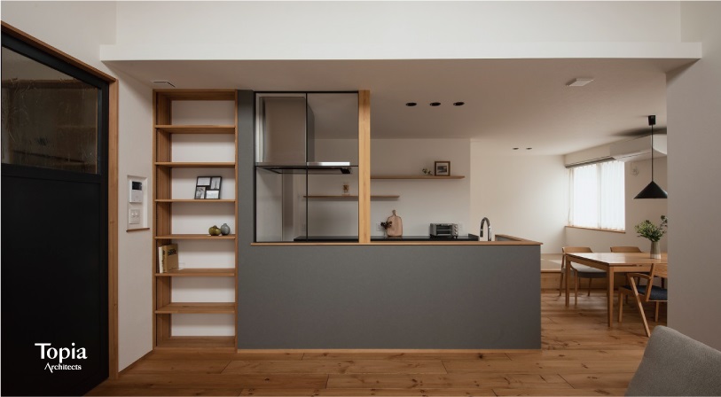 家族や友人とくつろぐ空間はリビングからお庭へと大きくつながり、みんなで愉しむことができ、リビングからプライベートの空間へはゆるやかにつながることで、プライバシーを守りながらも家族の気配を感じ取れ安心できる。